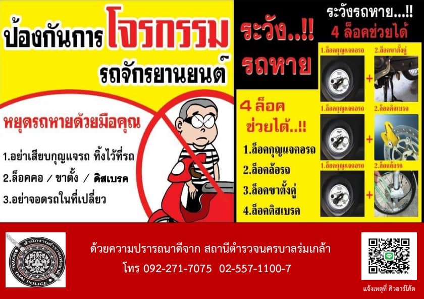 ไม่เสียบกุญแจทิ้ง,ล็อคคอ และไม่จอดในที่เปลี่ยว